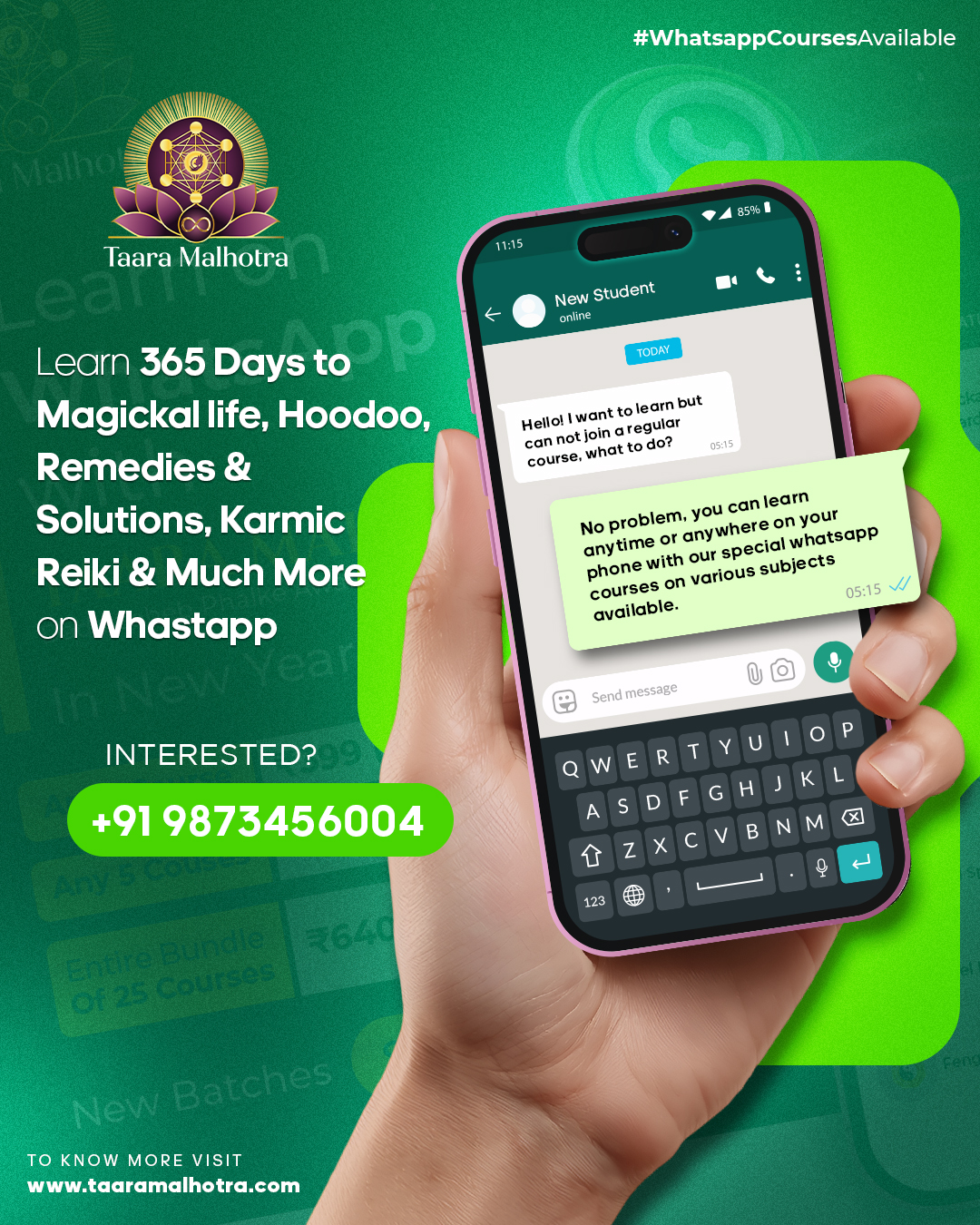 The WhatsApp Courses are a set of bite-sized, practice-focused lessons offered by Dr. Taara Malhotra — designed to deliver spiritual, intuitive and healing training via WhatsApp. Materials are provided through video, audio and PDF formats so you can learn from anywhere and at any time.